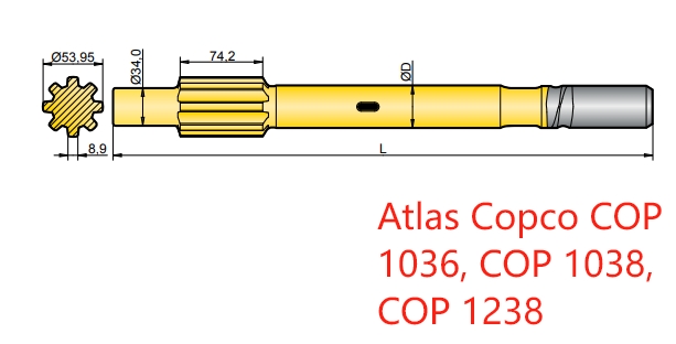 90515888, 90515899, 90515981, 90515996, 90515889, 90516341, 90515900, 90515982 - Atlas Copco COP 1036, COP 1038, COP 1238 shank adapters for Bench and Production Drilling